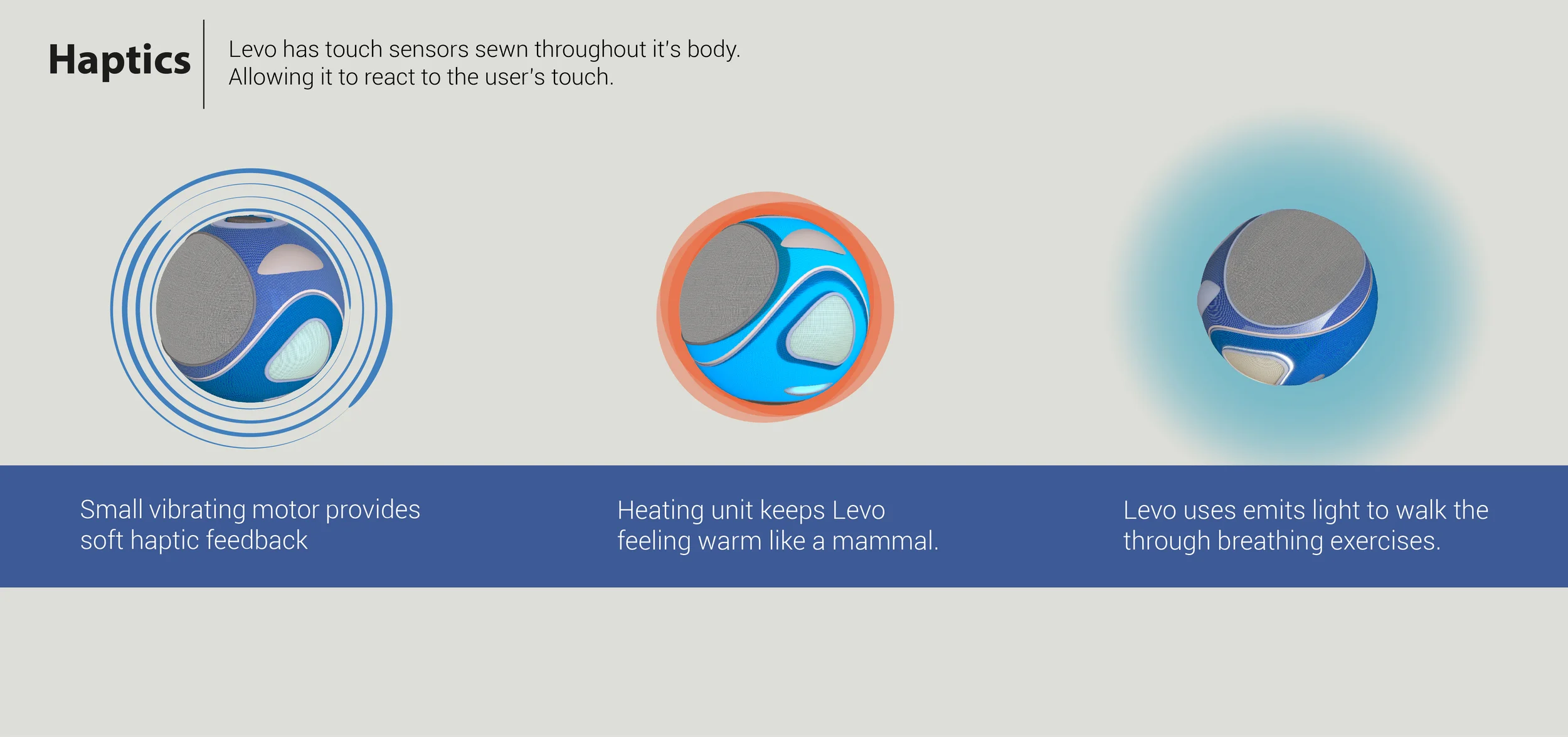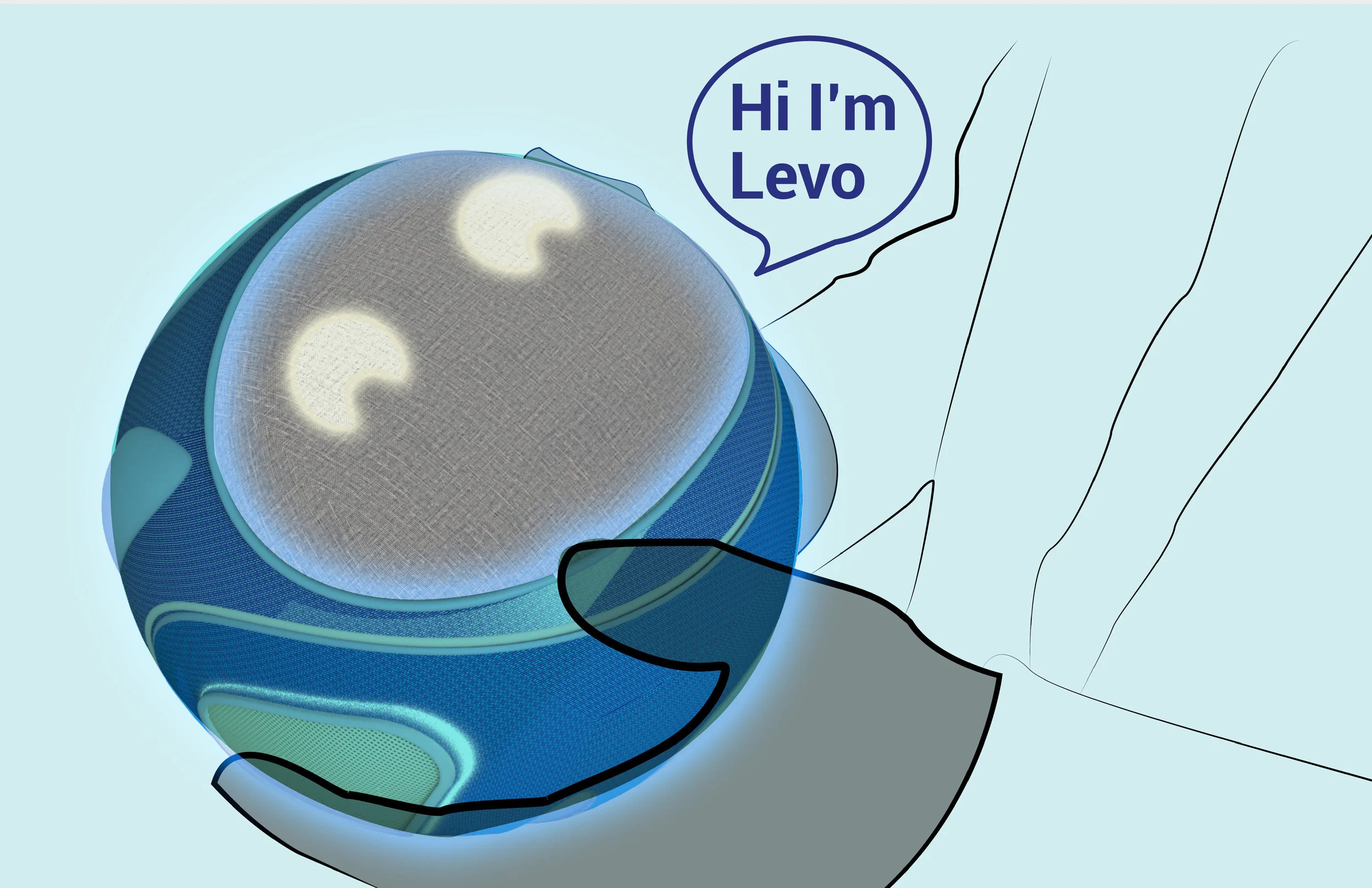 Upon meeting Levo it greets you with a soft glow and an audible "Hello". It's body feels warm to the touch the same way a mammal does.